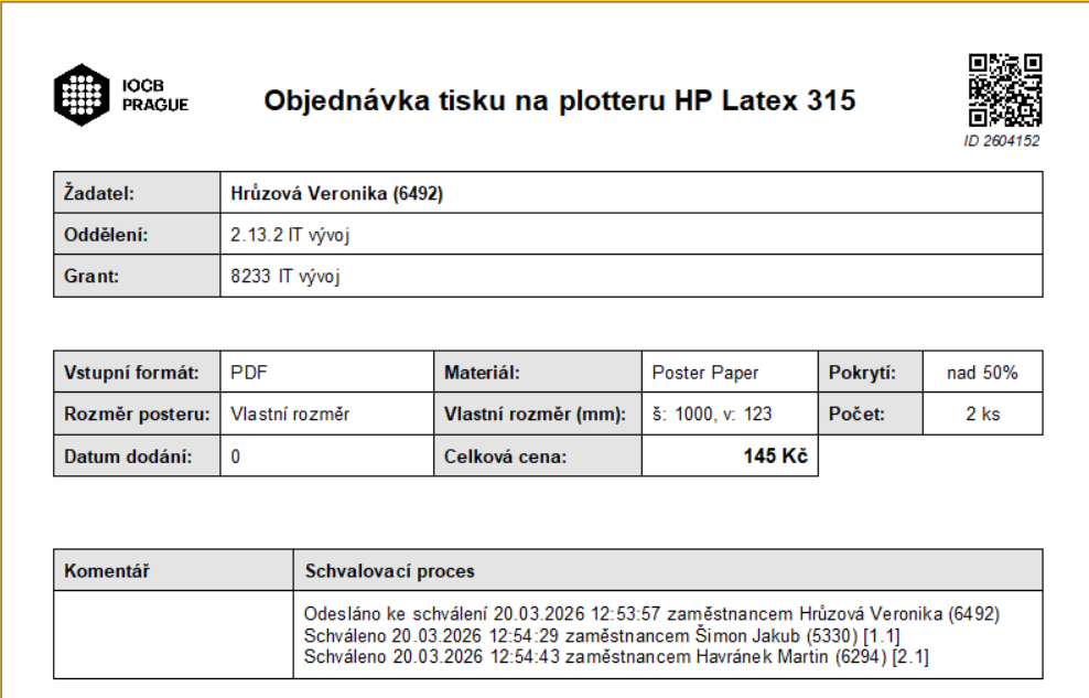 Požadavek nejdříve schvaluje zaměstnanec IT odpovědný za reprografii a poté vedoucí oddělení žadatele.