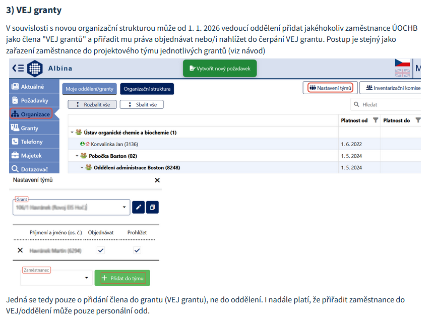 VEJ granty - nový zaměstnanec/přechod mezi odděleními Tisk