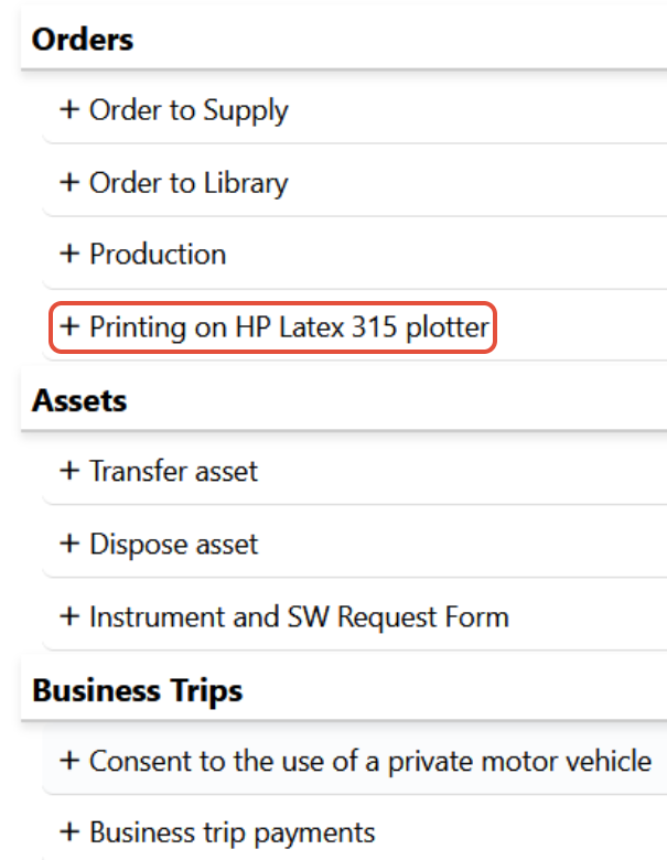E-form: "Order of poster printing on Plotter HP Latex 315"
