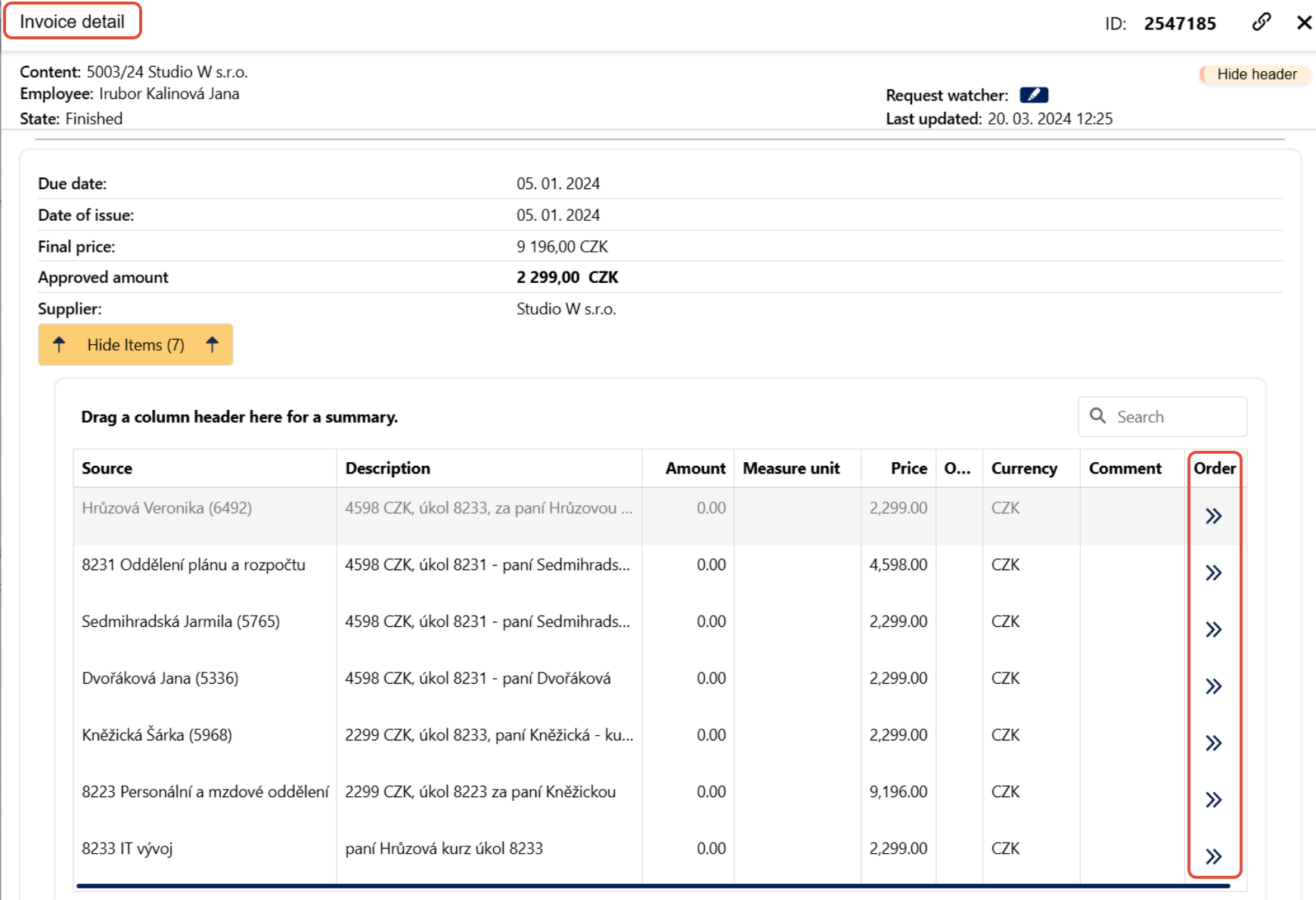 When approving an invoice in Albína, you can now view the original order in the request details.